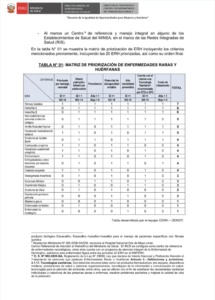 En la tabla Nº1 se muestra la matriz de priorización de ERH incluyendo los criterios mencionados previamente, incluyendo las 20 ERH (enfermedades raras o huérfanas) priorizadas, así como su orden final. Actualmente se viene realizando una Campaña con el Ministerio de Salud para Visualizar las enfermedades raras y huérfanas,...